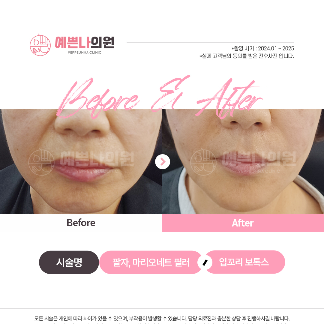 - 처진 입꼬리를 올려주어 훨씬 생기 있고 밝은 인상을 줄 수 있습니다.
