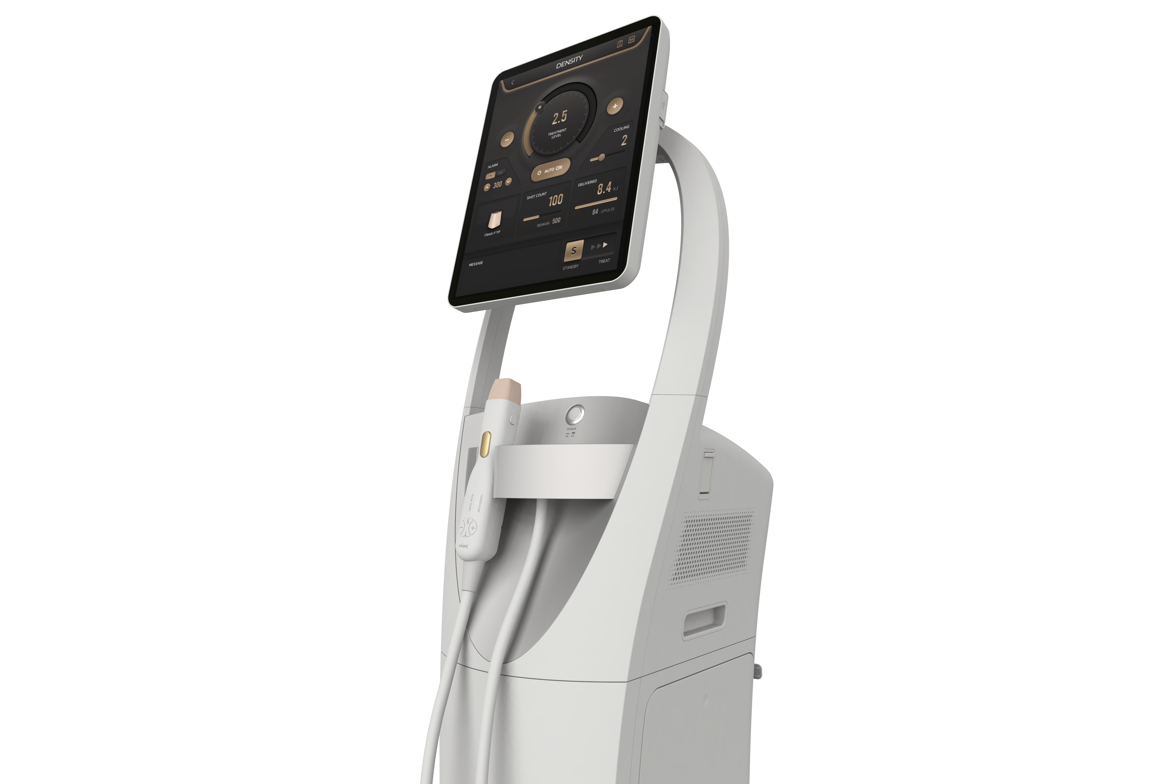 - 덴서티 (Density): 두 가지 고주파(Monopolar + Bipolar)가 한 팁에서 동시에 나와 피부 깊은 곳과 얕은 곳을 한 번에 공략합니다. 즉각적인 효과와 장기적인 효과를 동시에 잡았습니다.