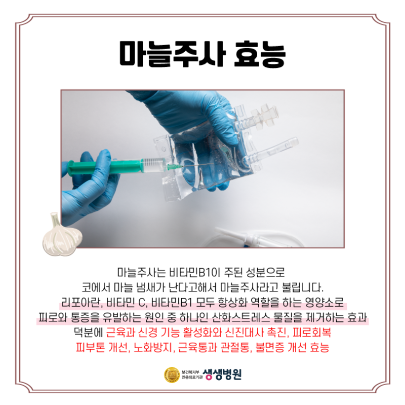 #마늘주사#비타민B1#푸르설티아민#피로회복주사#근육통#숙취해소